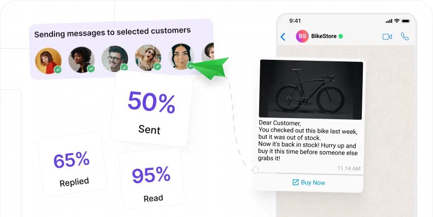Import your contacts and send targeted broadcast messages to reach a wider audience, generate more leads, and drive conversions.